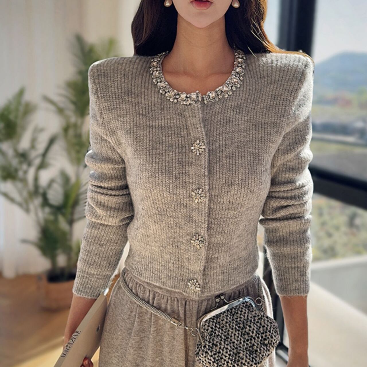 ネック周りにスパンコールとクリスタルビジューが贅沢に施されていて、