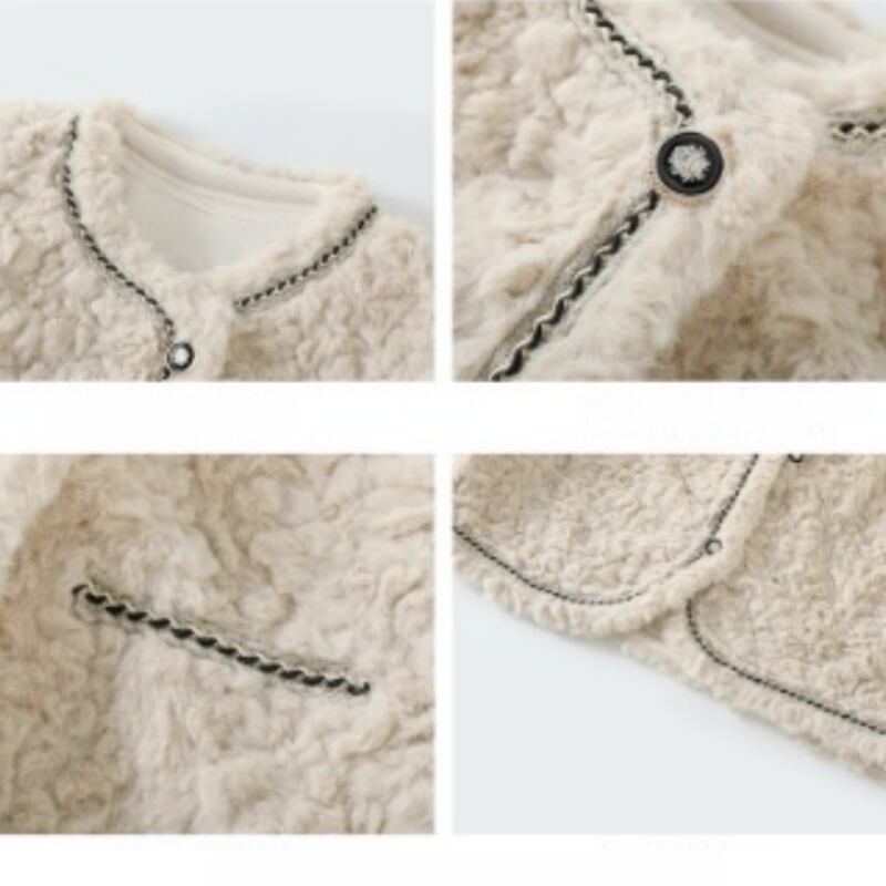ショート ファー ノーカラー ステッチ ジャケット