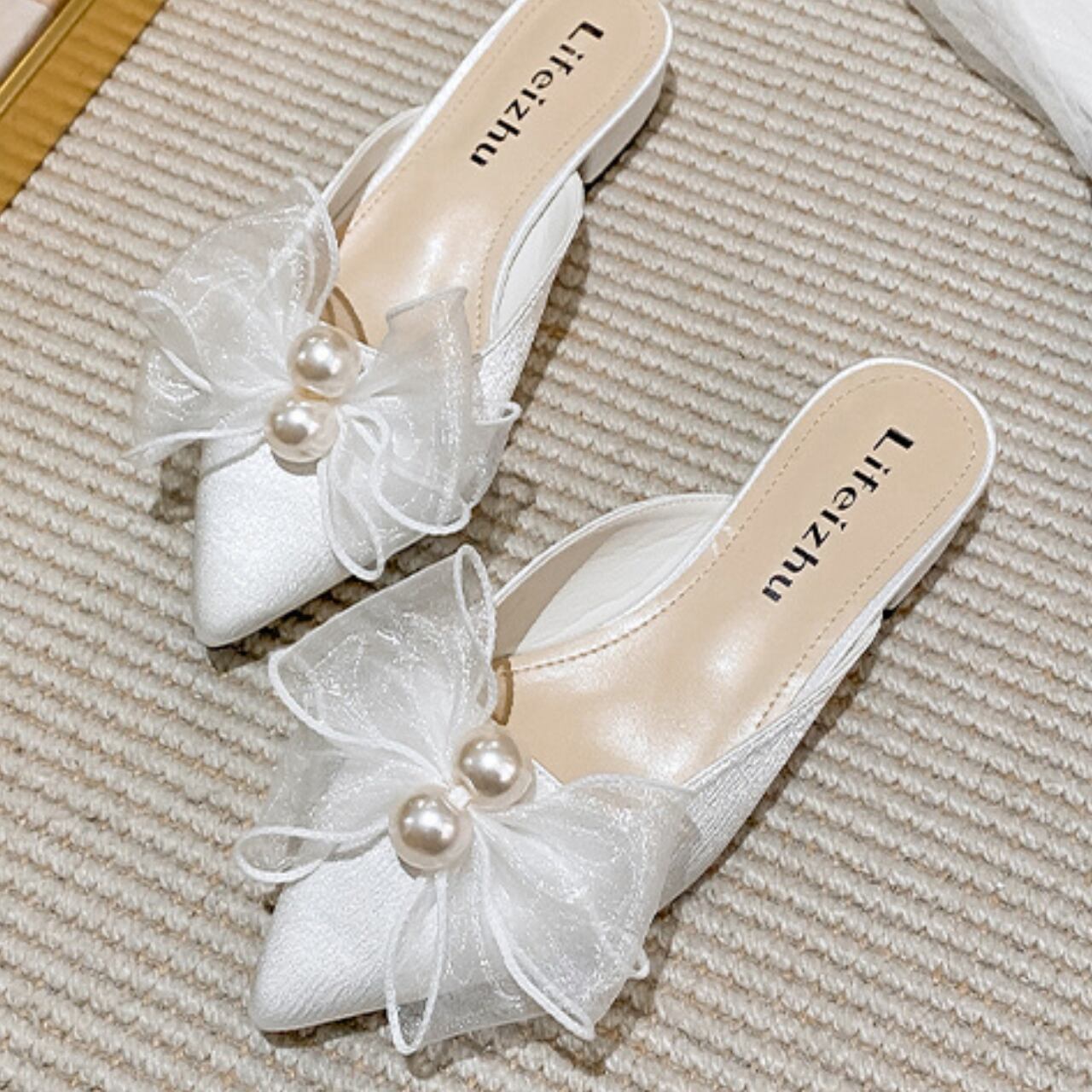 フェアリー リボンミッドヒール サンダル-ホワイト