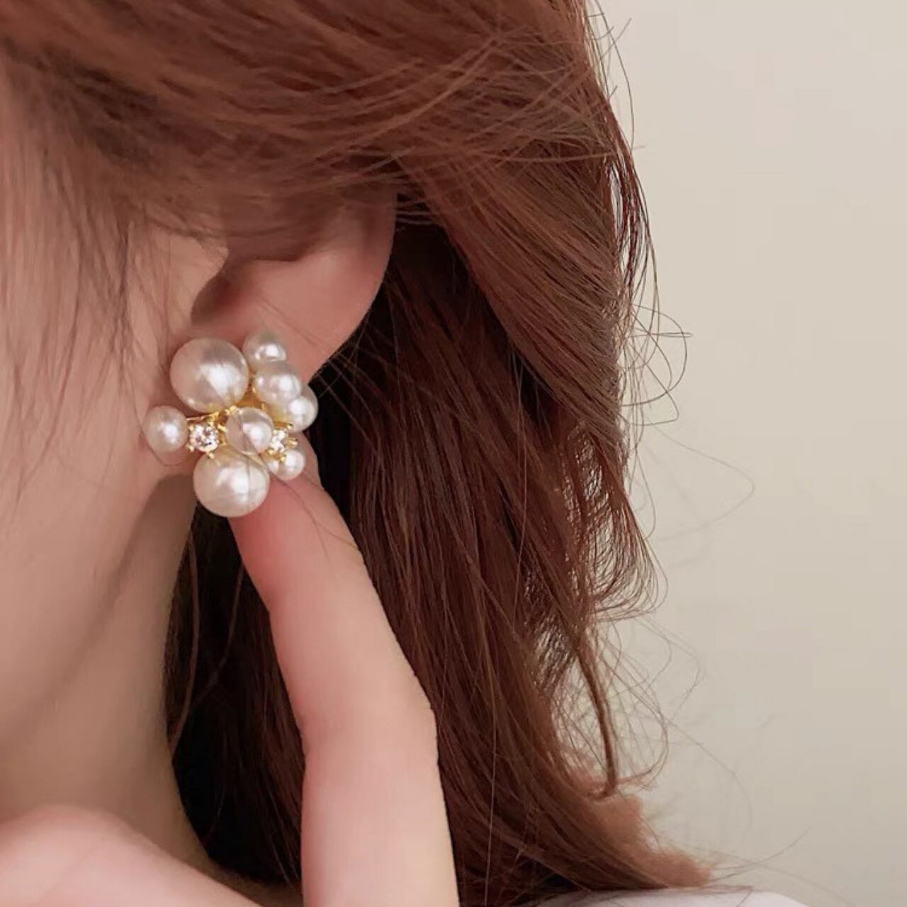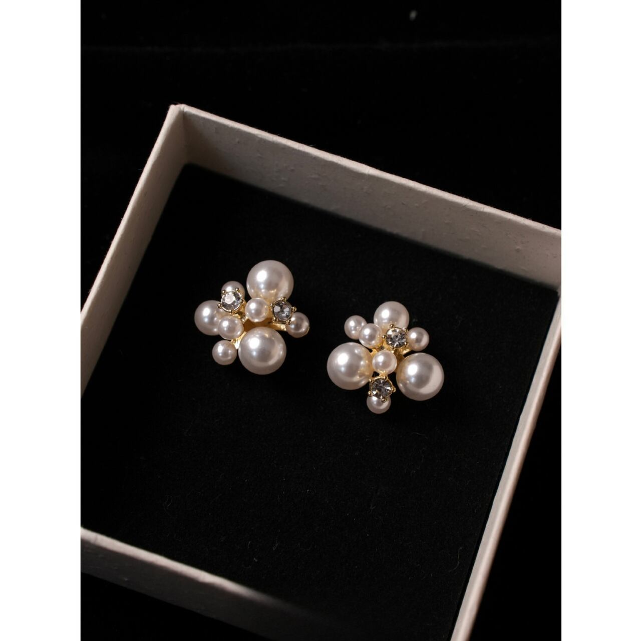 大小のパールが絶妙に組み合わさり、耳元を華やかに彩ります♡