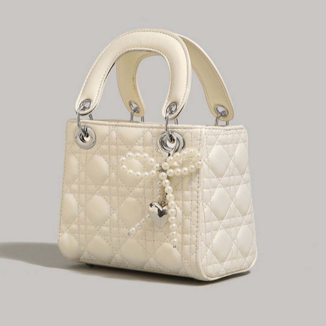 リボンチャーム キルティング ハンドバッグ-ホワイト