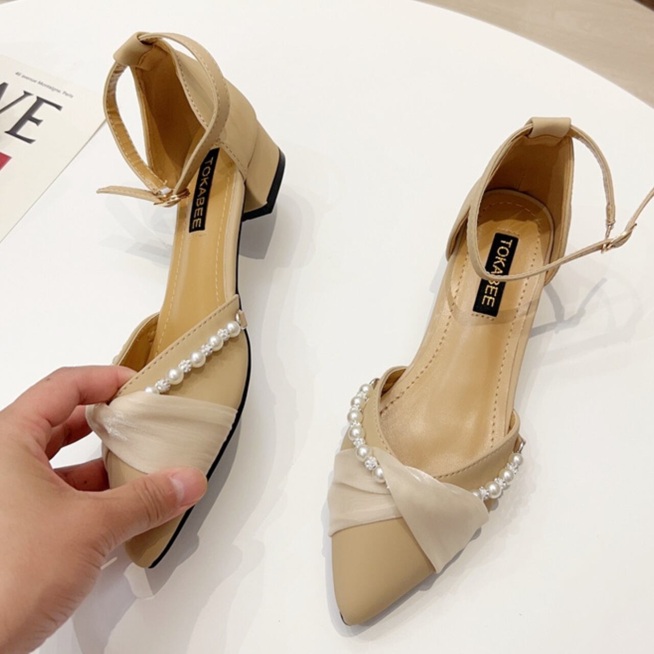 可愛らしいパールが程よくあしらわれたベルトパンプスです♡