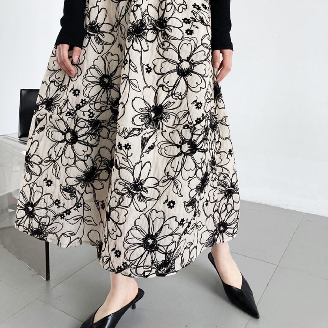 揺れるフレアデザインが特徴のこちらのスカートは、